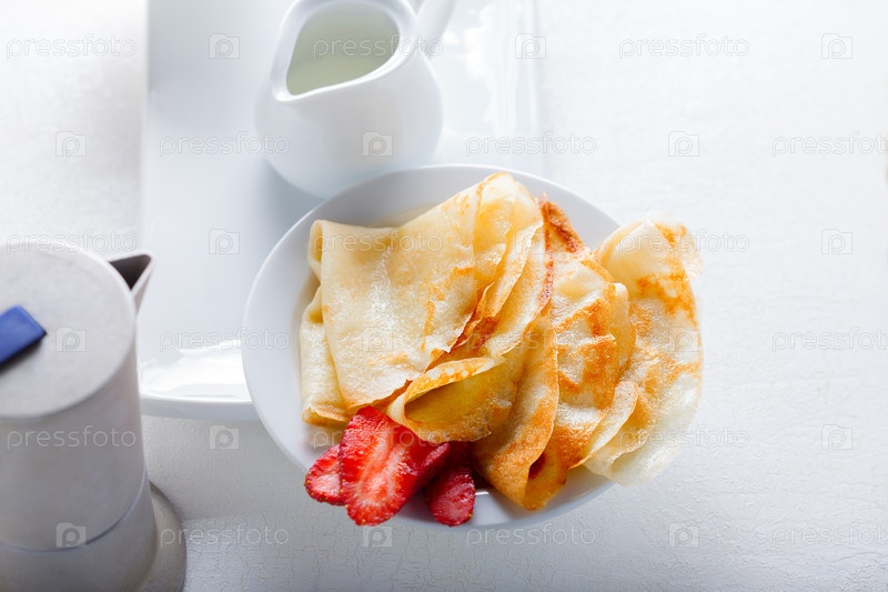 Блинчики с клубникой и кофе