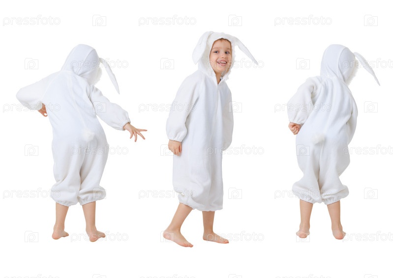 Счастливый танцующий ребенок в костюме кролика