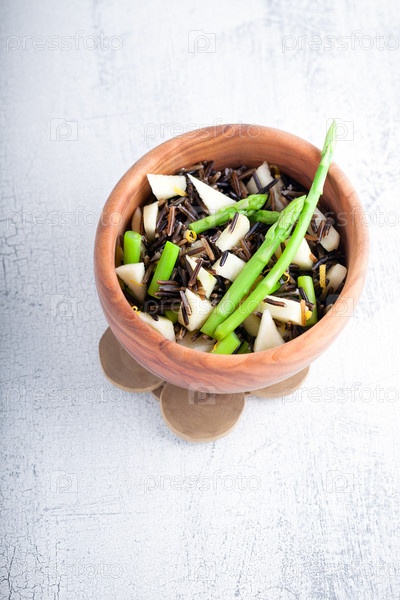 Черный рис, яблоки и спаржа
