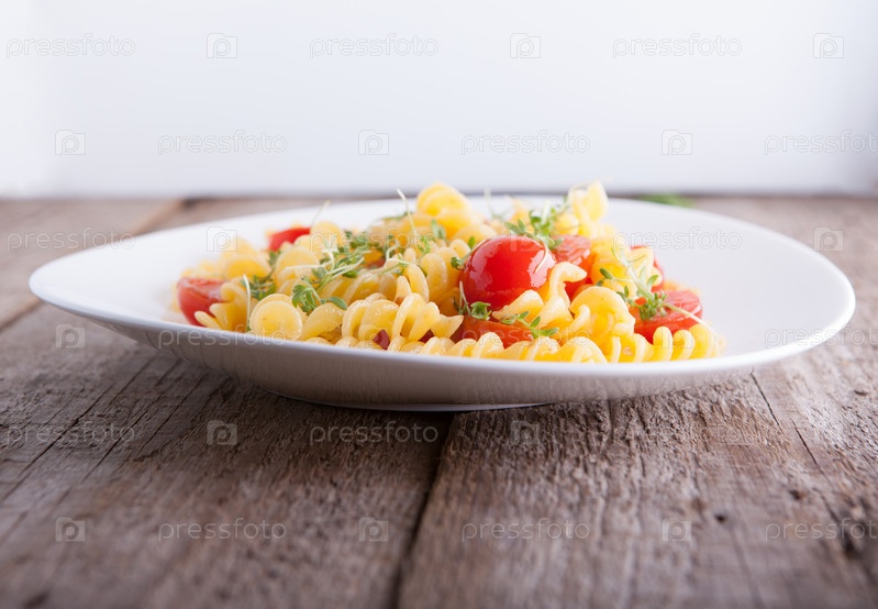 Фузилли паста с кресс-салатом и томатами черри