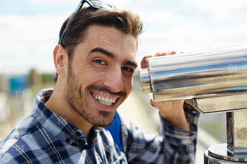 Счастливый турист на смотровой площадке