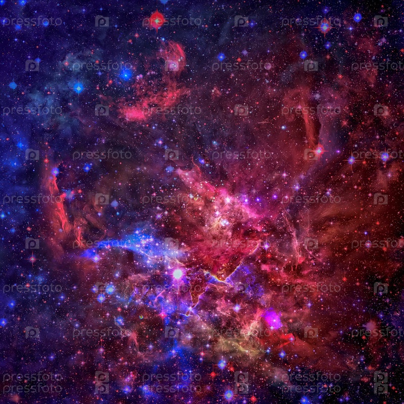 Красивая туманность, звезды и галактики
