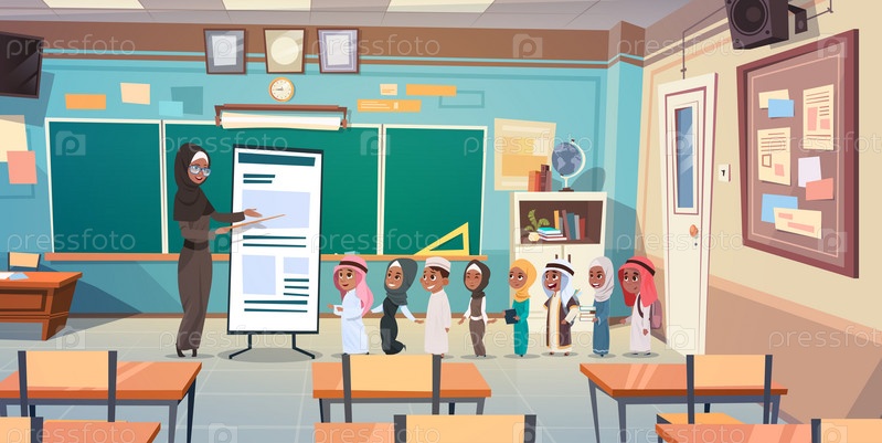 Группа арабских школьников с учителем