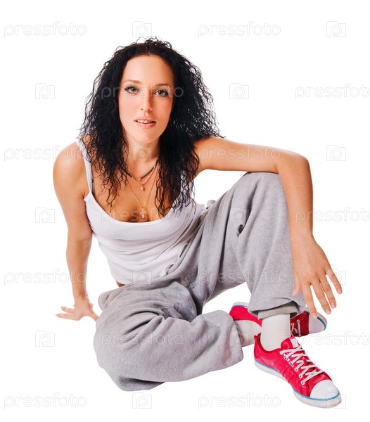 Красивая девушка в спортивной одежде на белом фоне