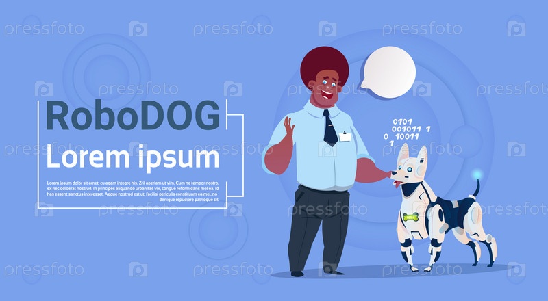 Человек играет с собакой роботом