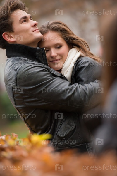 Счастливая пара в осеннем парке