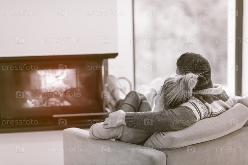 Молодая пара у камина