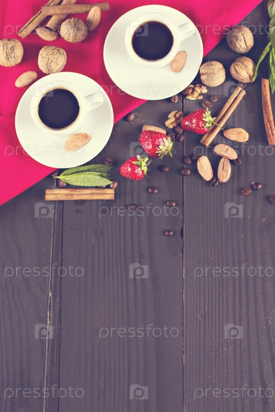 Завтрак. Две чашки кофе эспрессо и клубника