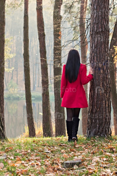 Красивая молодая женщина в осеннем парке
