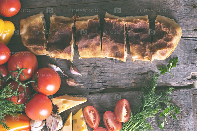 Самодельный рулет с курицей, сыром, овощами и с белым соусом