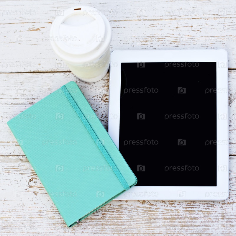 Дневник, планшетный компьютер и кофе на столе