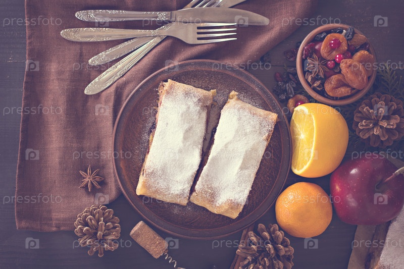 Штрудель с сухофруктами, апельсинами и ягодами