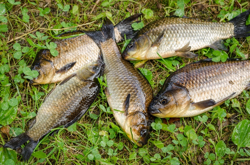 Карпы на берегу