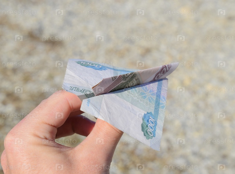 Денежный самолет в руке