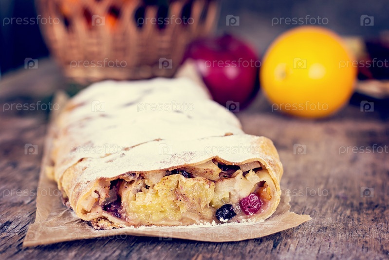 Яблочный штрудель с апельсинами и клюквой