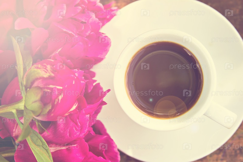 Черный кофе и бордовый пион