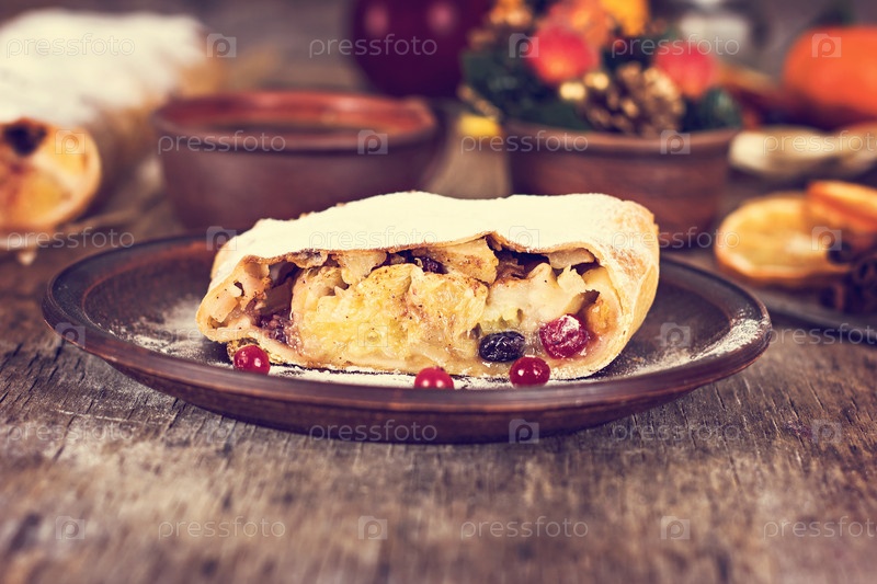 Яблочный штрудель с апельсинами и клюквой
