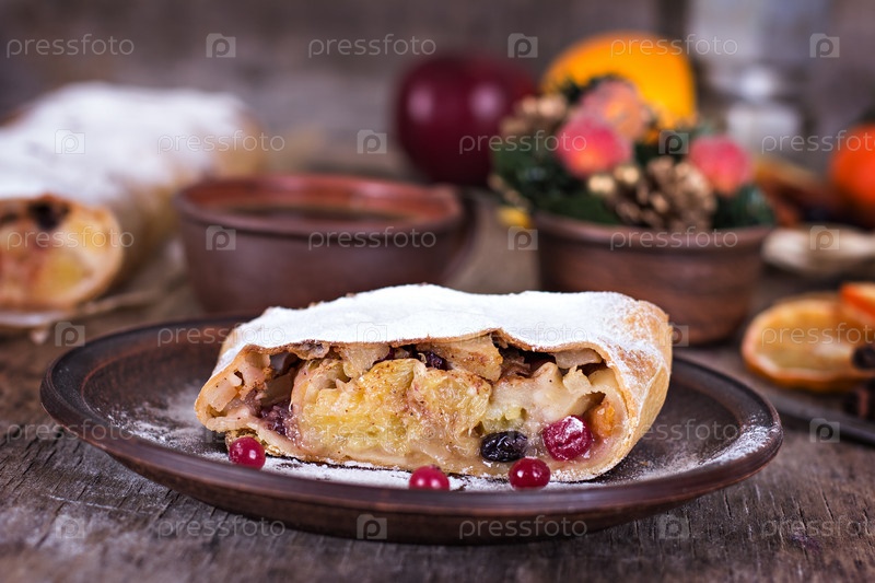 Яблочный штрудель с апельсинами и клюквой