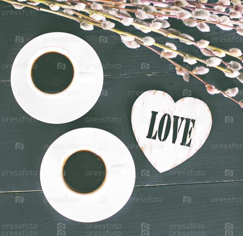 Две чашки кофе эспрессо и сердце