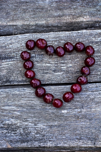Свежие вишни выложены в форме сердца