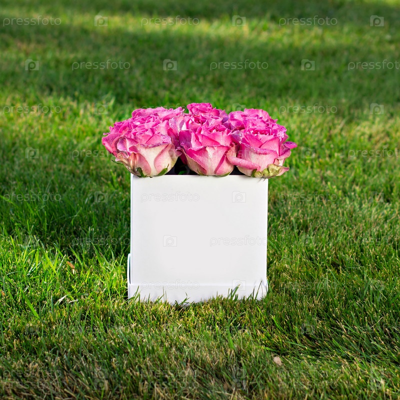Букет из розовых роз в коробке
