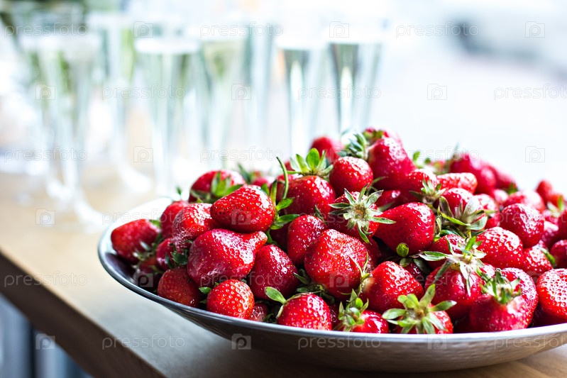 Блюдо с клубникой и шампанское