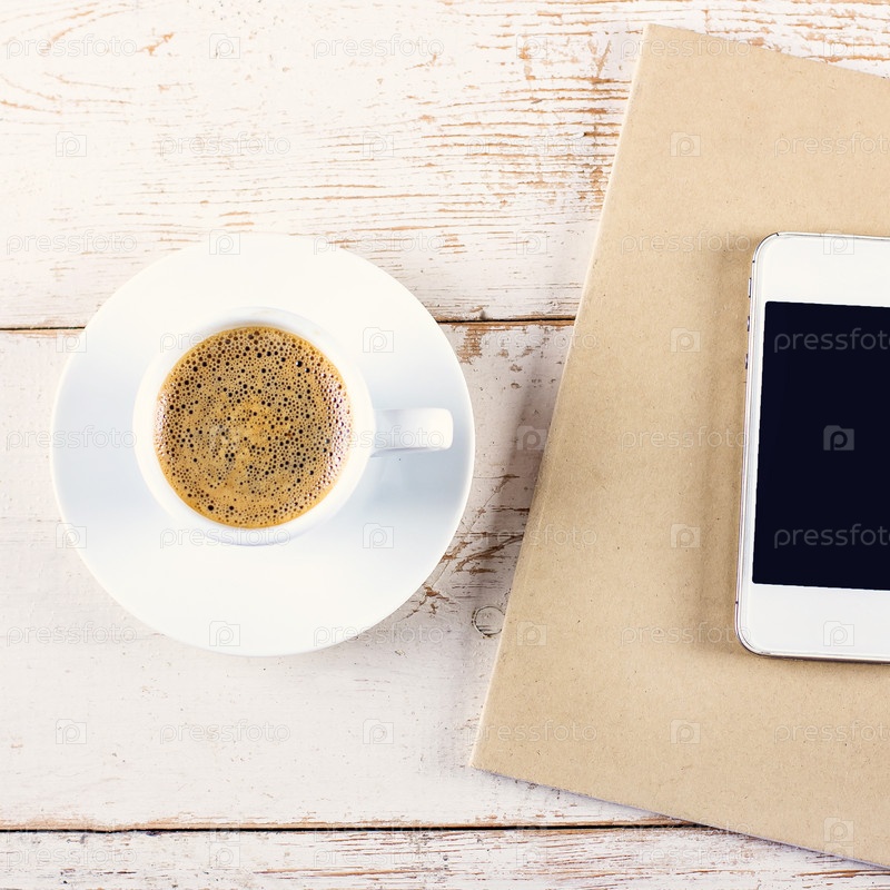 Телефон с чашкой крепкого кофе