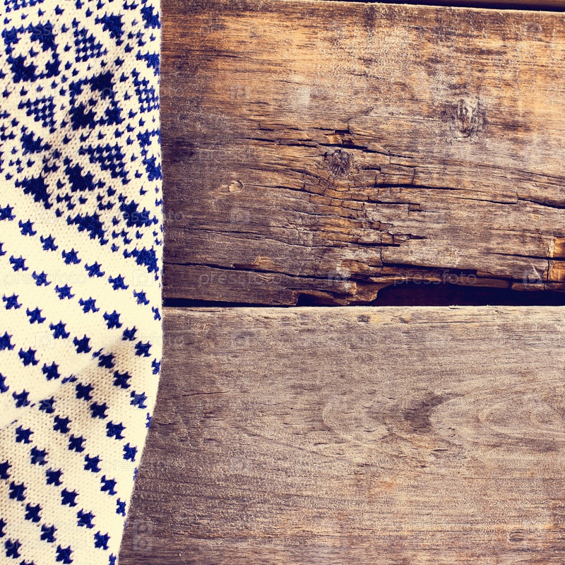 Вязаный плед или свитер на старых деревянных досках