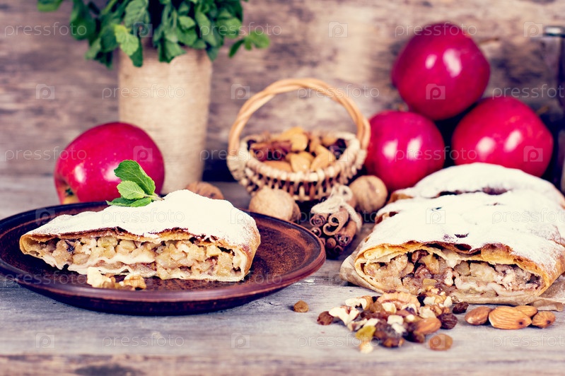 Яблочный штрудель с апельсинами, клюквой и сухофруктами