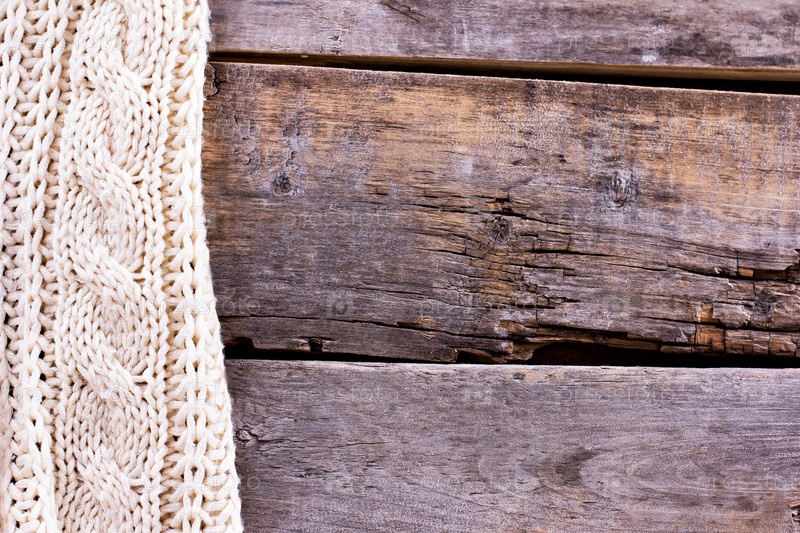Вязаный плед или свитер на старых деревянных досках