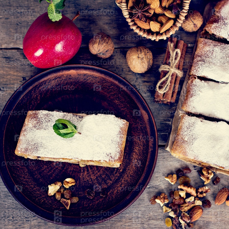 Яблочный штрудель с апельсинами, клюквой и сухофруктами