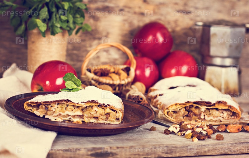 Яблочный штрудель с апельсинами, клюквой и сухофруктами