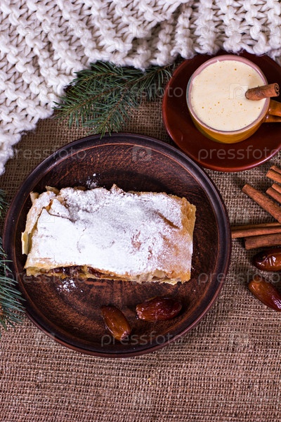 Яблочный штрудель и чашка кофе