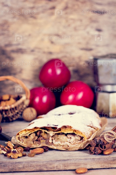 Яблочный штрудель с апельсинами, клюквой и сухофруктами