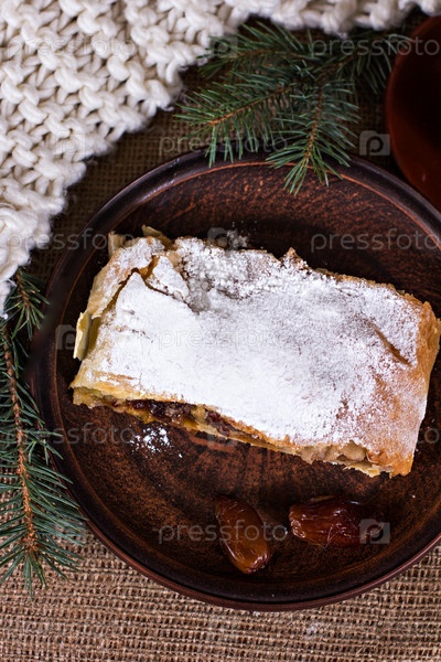 Яблочный штрудель и чашка кофе