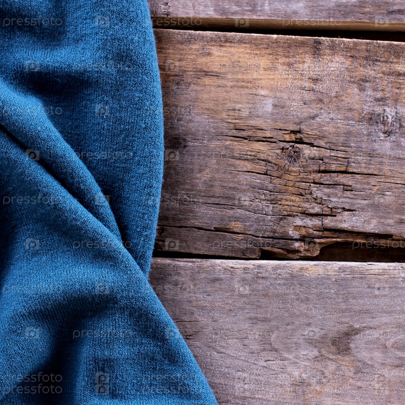 Вязаный плед или свитер на старых деревянных досках
