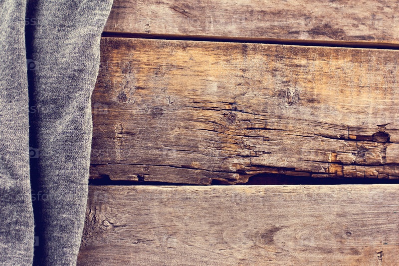 Вязаный плед или свитер на старых деревянных досках