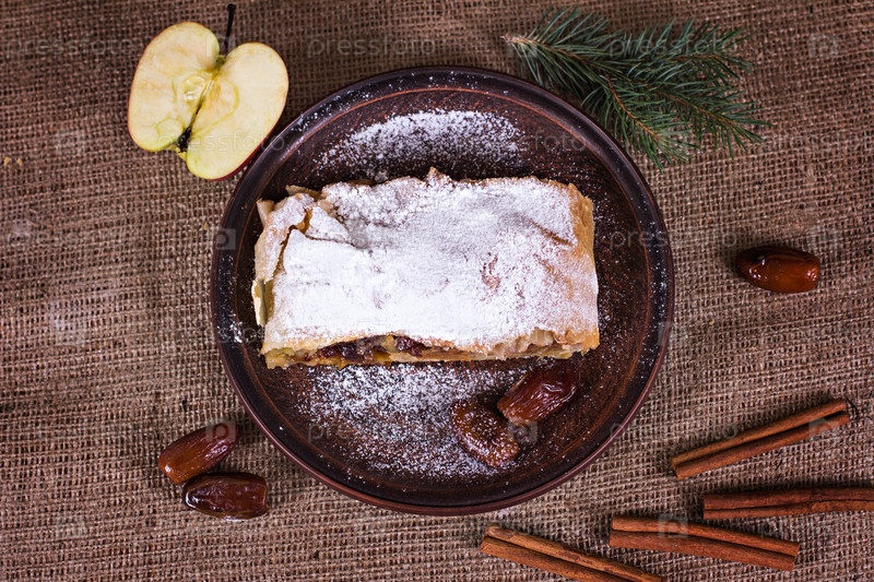 Яблочный штрудель или яблочный пирог с финиками и корицей