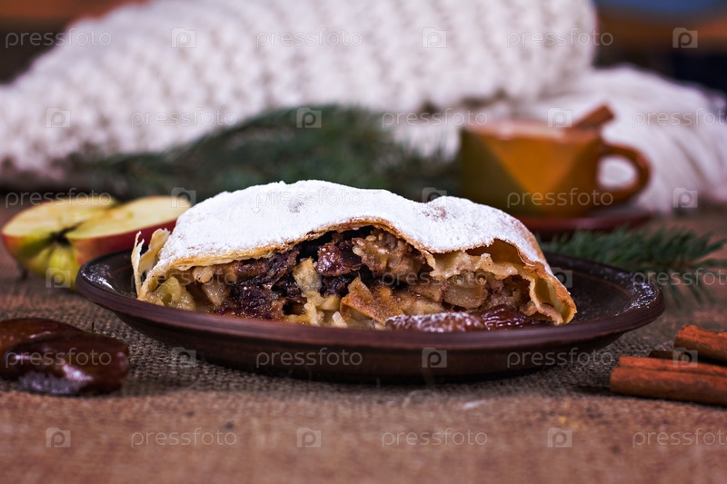 Яблочный штрудель или яблочный пирог и чашка кофе