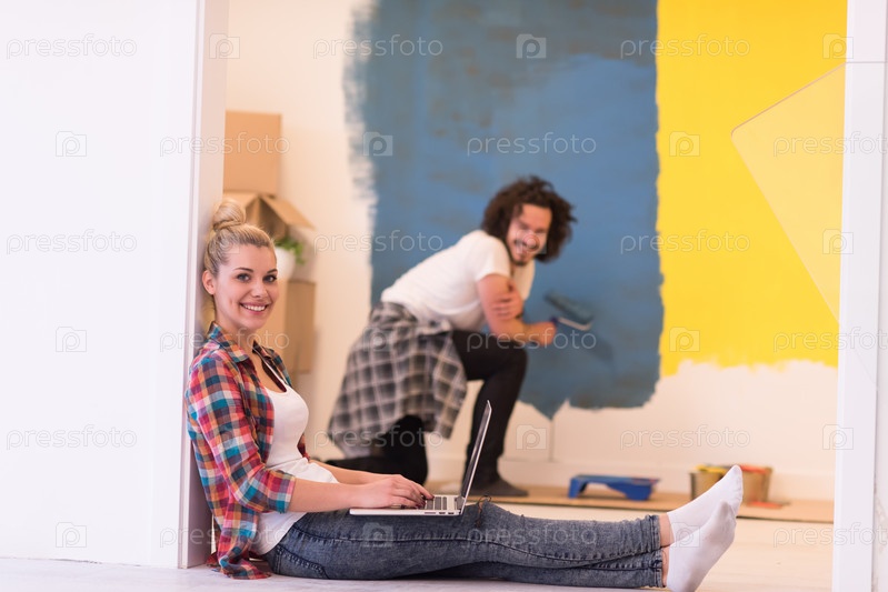 Счастливая пара делает ремонт дома