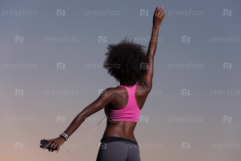 Молодая чернокожая девушка танцует на открытом воздухе