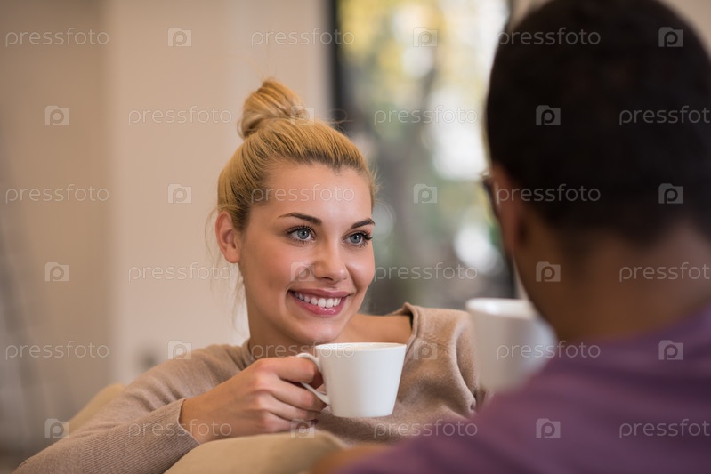 Молодая многонациональная пара перед камином