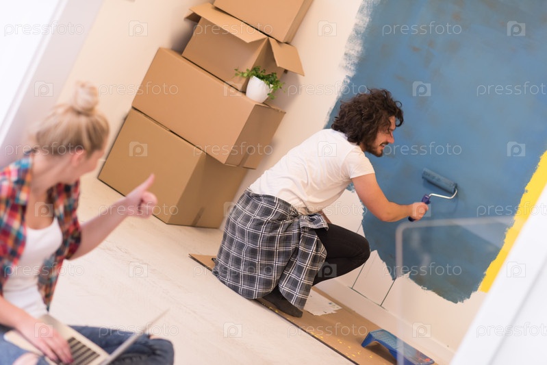 Счастливая пара делает ремонт дома