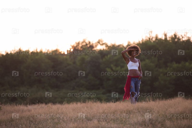 Молодая чернокожая женщина в природе