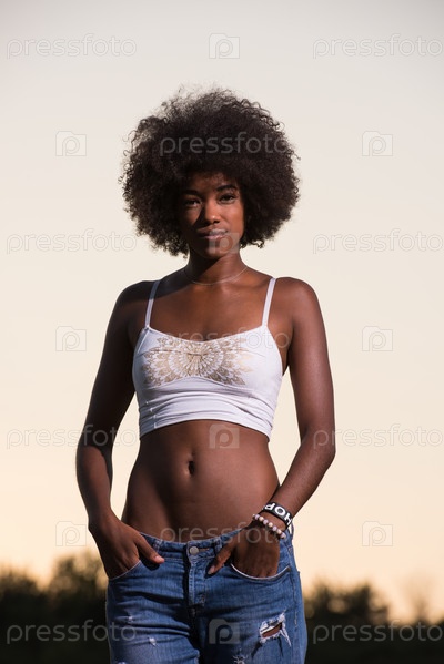 Молодая чернокожая женщина в природе