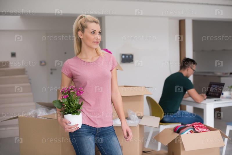 Счастливая молодая пара в новом доме