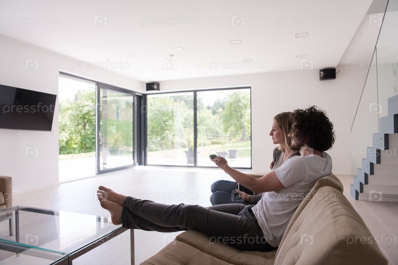 Молодая пара отдыхает в гостиной