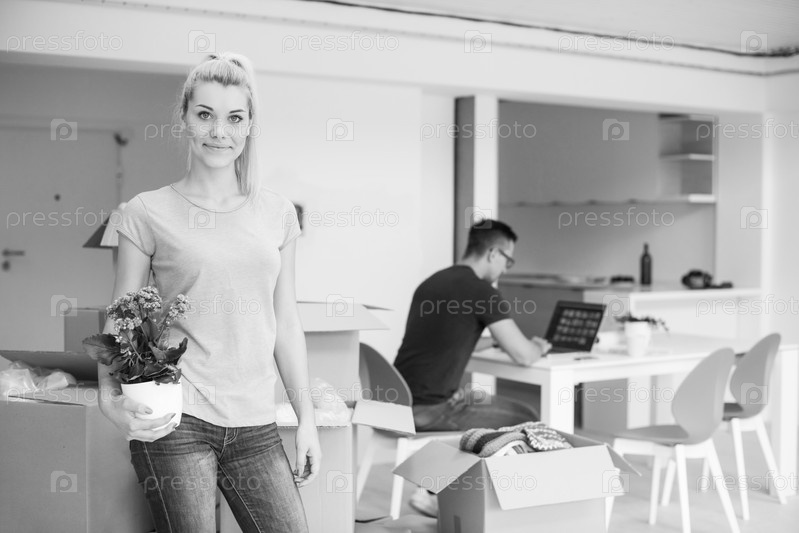 Счастливая молодая пара в новом доме