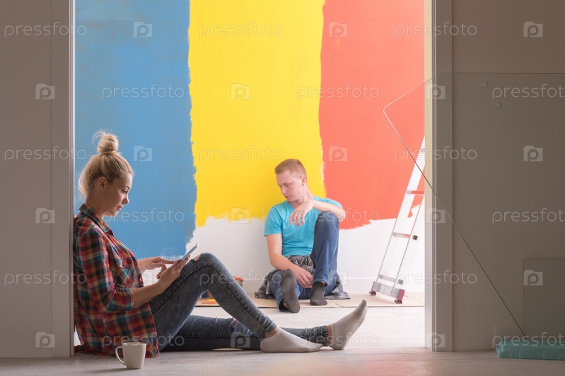 Счастливая молодая пара после покраски