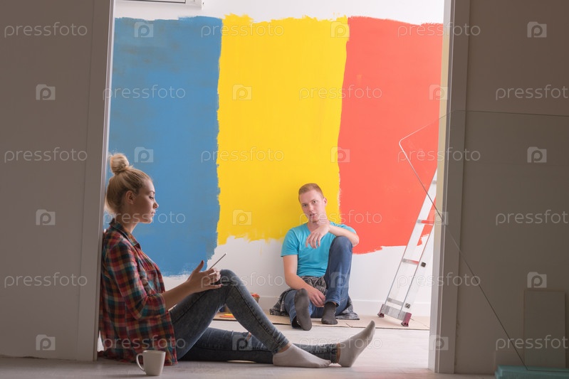 Счастливая молодая пара после покраски